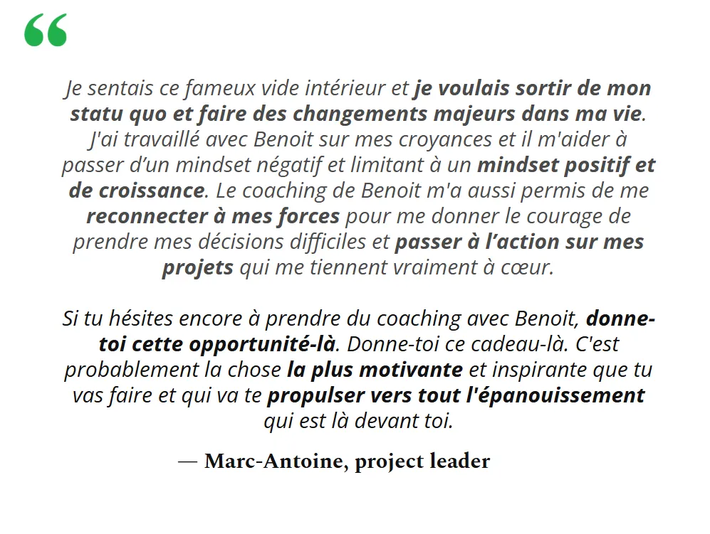 Tu es prêt à te regarder honnêtement, à remettre en question tes vieux patterns et à passer à l’action.