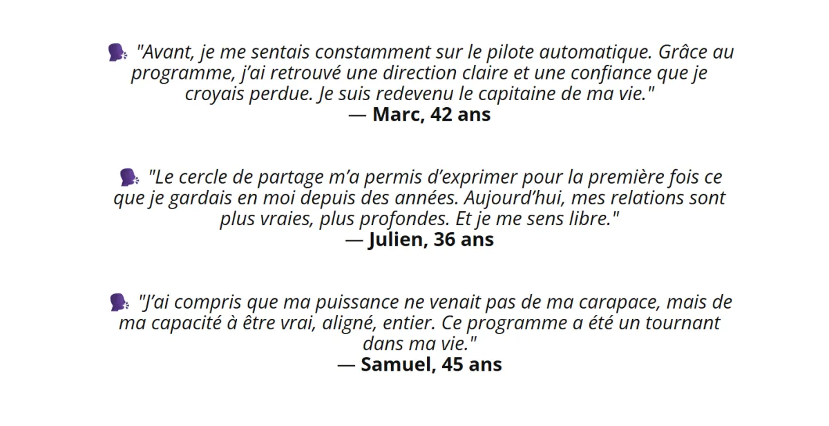 Tu veux devenir un homme plus ancré, plus présent, plus courageux, dans ta vie personnelle et dans tes relations.